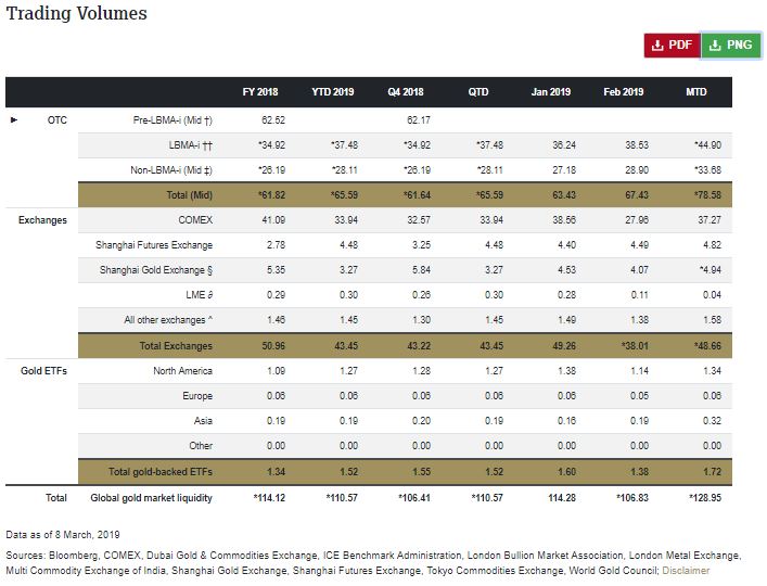 Liquidity – COMEX net longs are back up-to-date and showed a decrease in net longs from 500t to 300t. Gold market liquidity fell in February from $114bn to $104bn a day versus January. However, volumes were heavy on the first week of the month at $128bn.