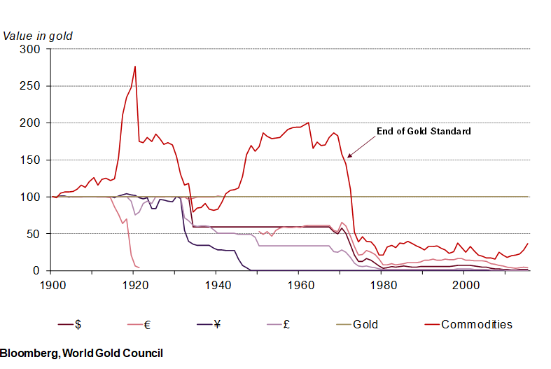 5. Proven store of value as commodity values fell sharply against gold following the end of the gold standard.