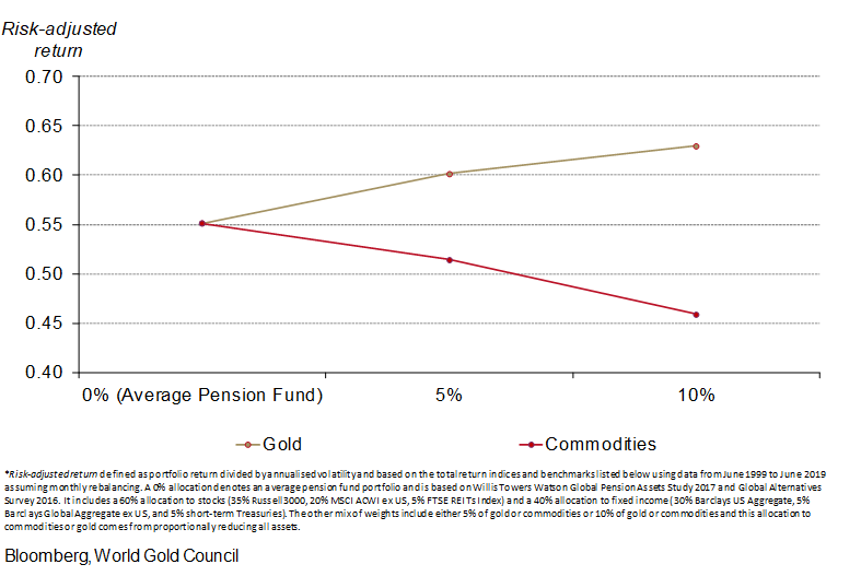 Ultimately, while commodities can be a relevant tactical asset, a strategic gold allocation of 2%-10% can supplement or replace a broad-based commodities investment alone and may offer more widespread benefits and better risk-adjusted returns.