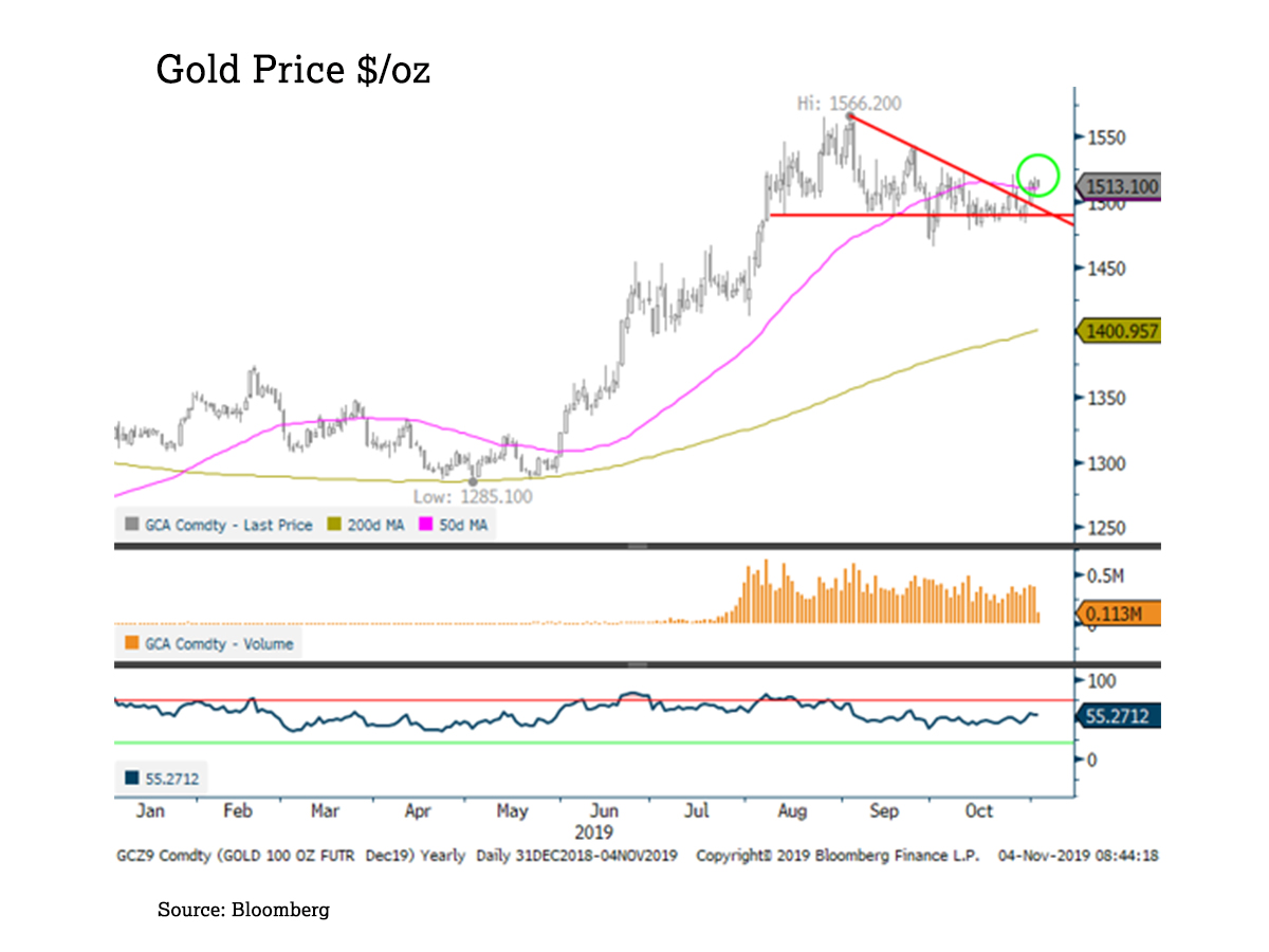 Gold remained above the $1,500 level and was also able to move above the $1,510 50-day moving average. With the recent breakout, the gold price could test the ytd highs of $1,566 in the near-term.