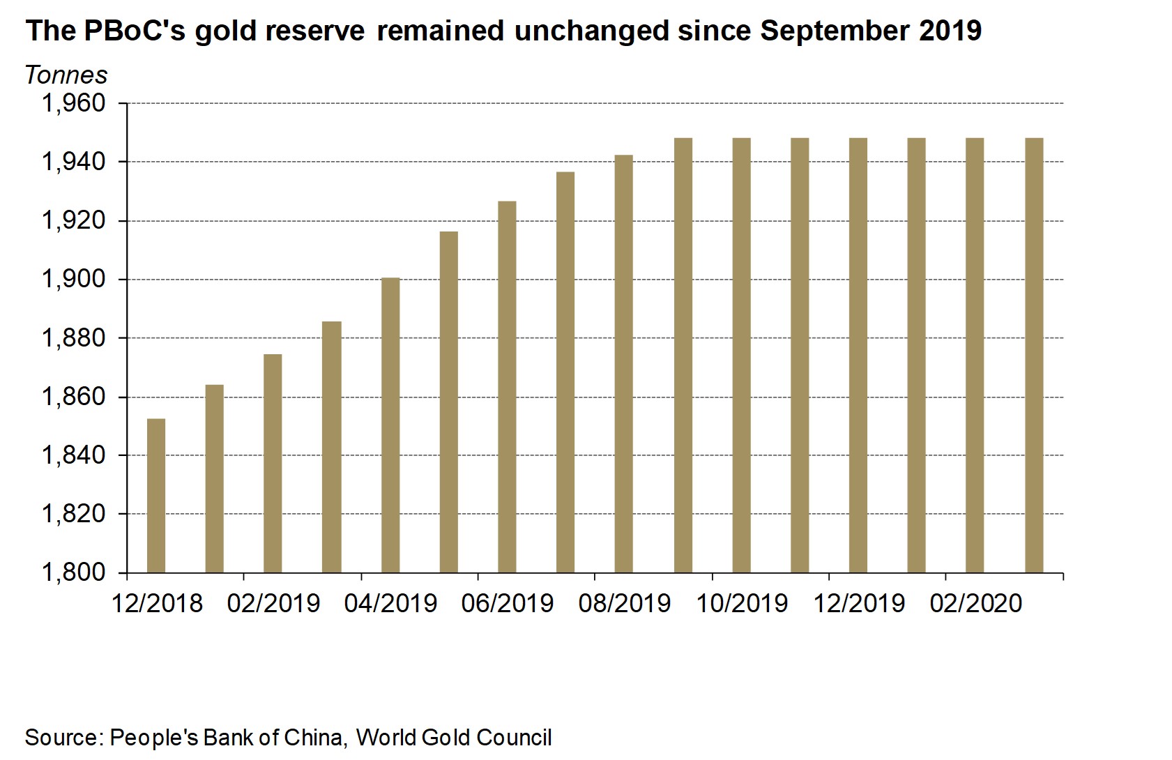 - The People’s Bank of China (PBoC) kept its gold reserves unchanged at 1,948t in March, accounting for 3.3% of total reserves.