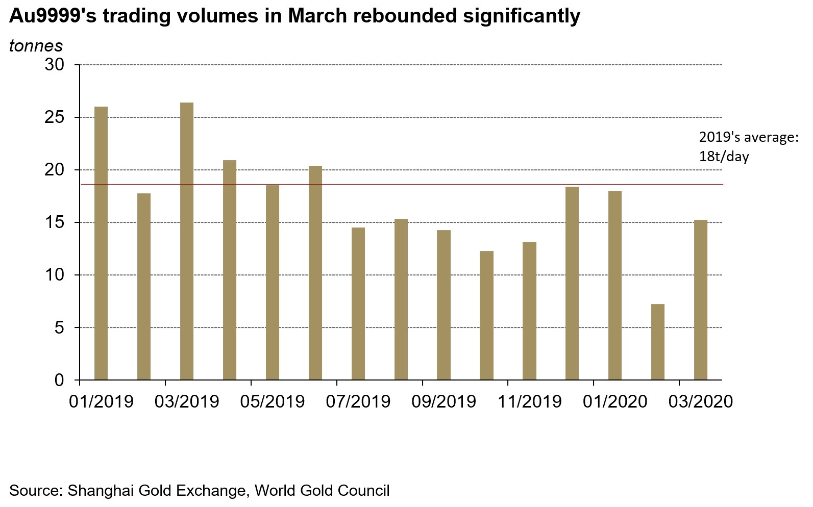 The rebounding Au9999’s trading volumes, a proxy for China’s physical gold demand, also reflected the gradual recovery in China’s domestic gold supply. In March, trading volumes averaged 16 tonnes (t) per day, 114% higher m-o-m, but below 2019’s monthly average of 18t per day.