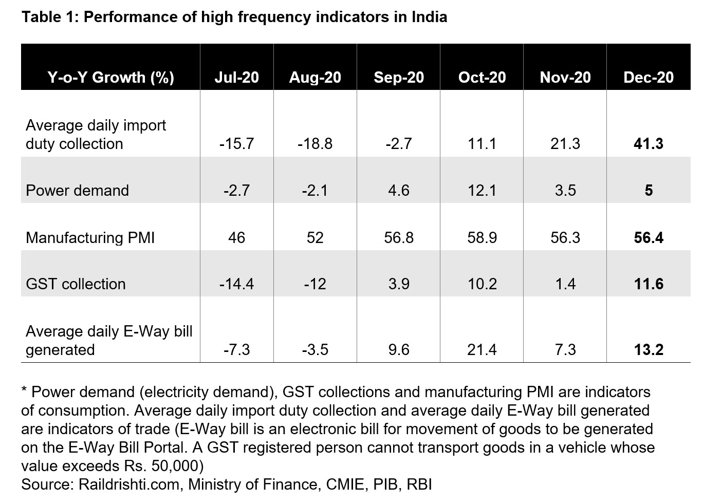 After making a strong recovery since COVID restrictions were eased in September, the pace began to moderate in November. High frequency indicators for December, however, signalled continued momentum in this economic recovery (Table 1).