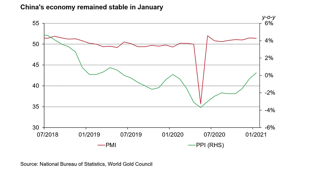Our recent analysis showed that significantly weakened gold demand and relatively ample gold supply in China were the main contributors to the Shanghai-London gold price discount in 2020. A revival in Chinese gold consumption amid a recovering economy has narrowed the spread since Q3 last year. The economic improvement in China will remain a key factor throughout 2021.