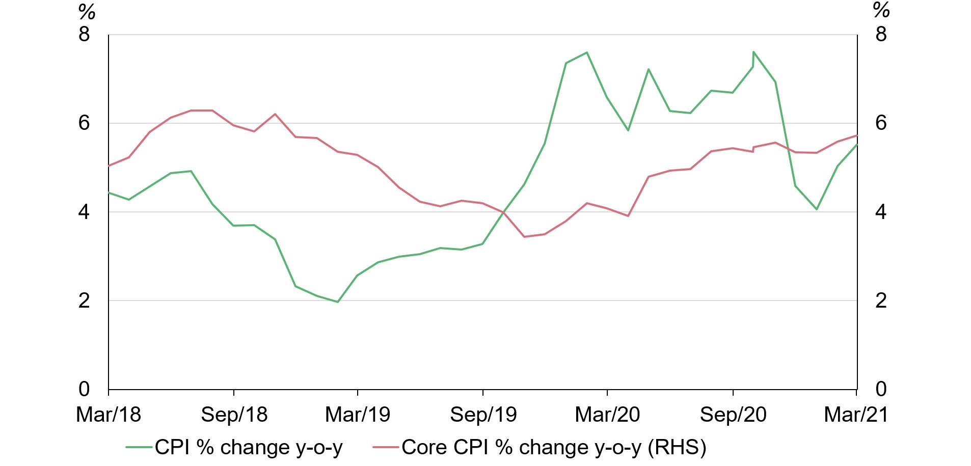 Retail inflation (CPI) rose to a four-month high of 5.52% in March from 5.03% in February due to higher food and fuel prices (Chart 3). As shown by a household expectations survey conducted by the RBI in March, household inflation expectations for the current period and for three months ahead have increased by 50 bps and 80 bps respectively. Econometric analysis we published in our report, 'India’s gold market: Innovation and evolution', indicated that – everything else remaining constant – a 1% increase in inflation may increase consumer demand by 2.6% in the short term.4