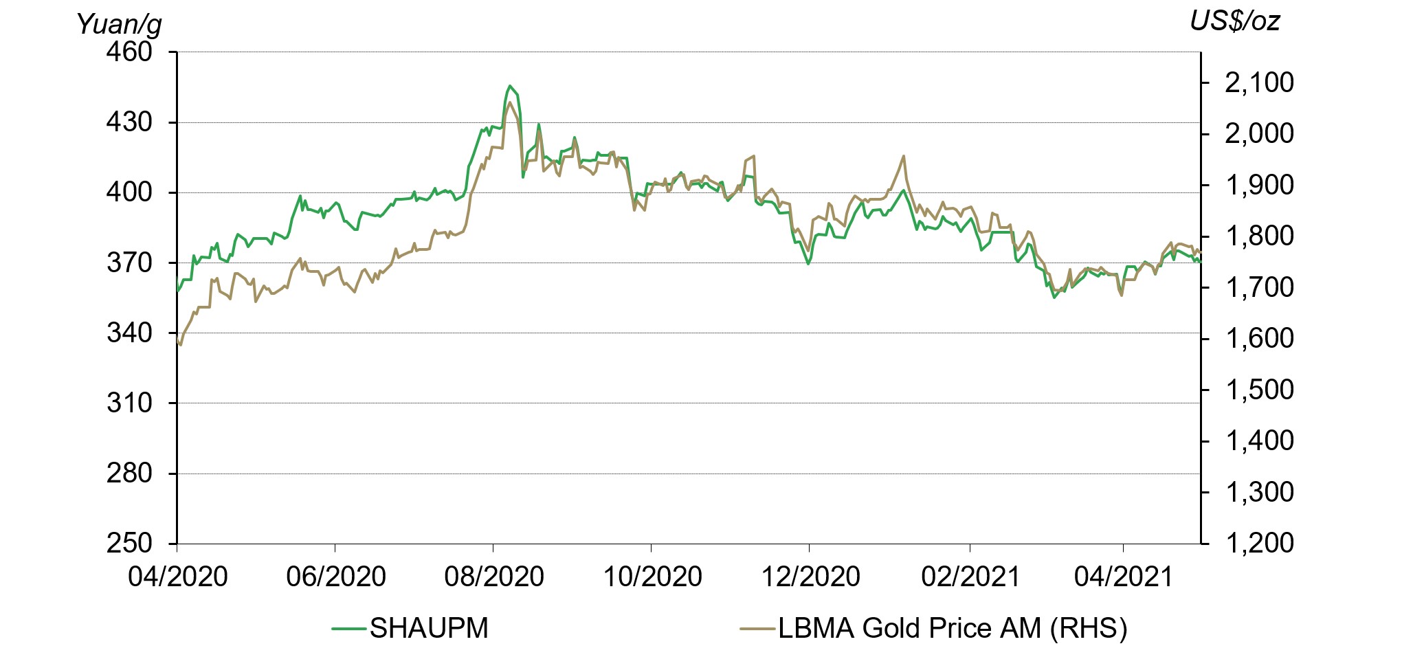 Also, with a longer Labour Day holiday than in pre-pandemic years and with more effective containment of COVID-19 than 2020, many industry participants expect better-than-average gold consumption in May.7 Various consumption stimuli from local governments has further boosted the industry’s confidence, resulting in higher-than-average gold withdrawals from the SGE in April.8