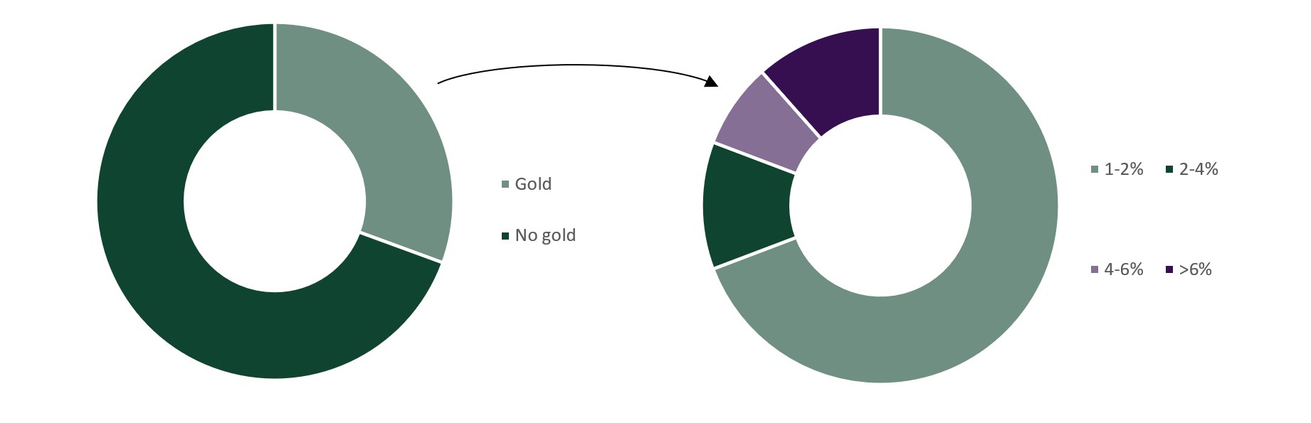 Gold, on the other hand, is still relatively under-owned by pension funds, and the findings from the poll confirm this. Less than a third (31%) of respondents hold an allocation to gold, and of those that do, 69% only had an allocation between 1-2% of their overall portfolio.