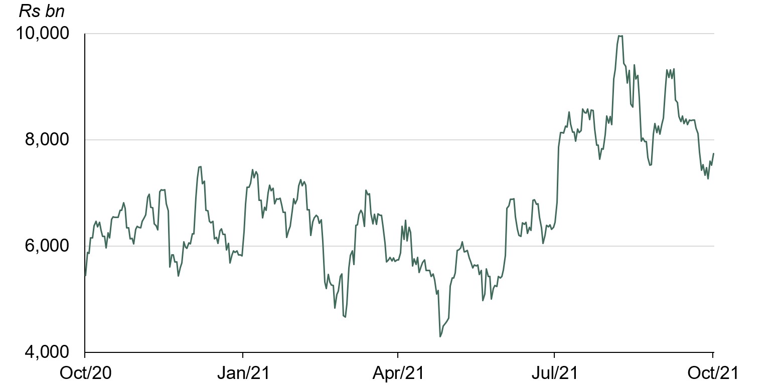 The RBI has started tapering its stimulus measures, but excess cash in the banking system poses an upside risk to inflation. Inflation may also stem from pass-through of higher input costs. The RBI is showing caution against premature tightening of its monetary policy in an effort to avoid stagflation.