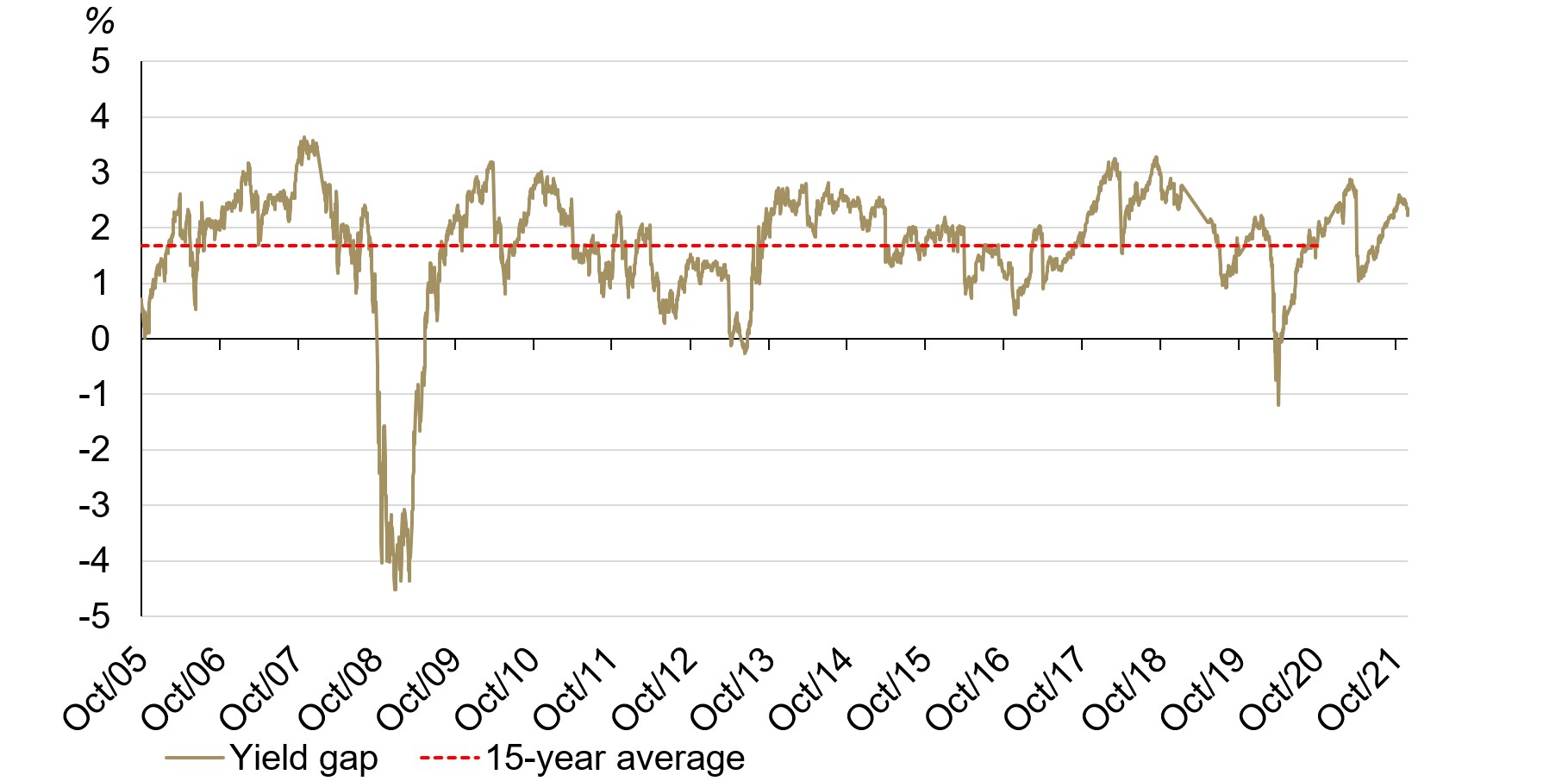 Chart 2: The current yield gap has outstripped its long-term average