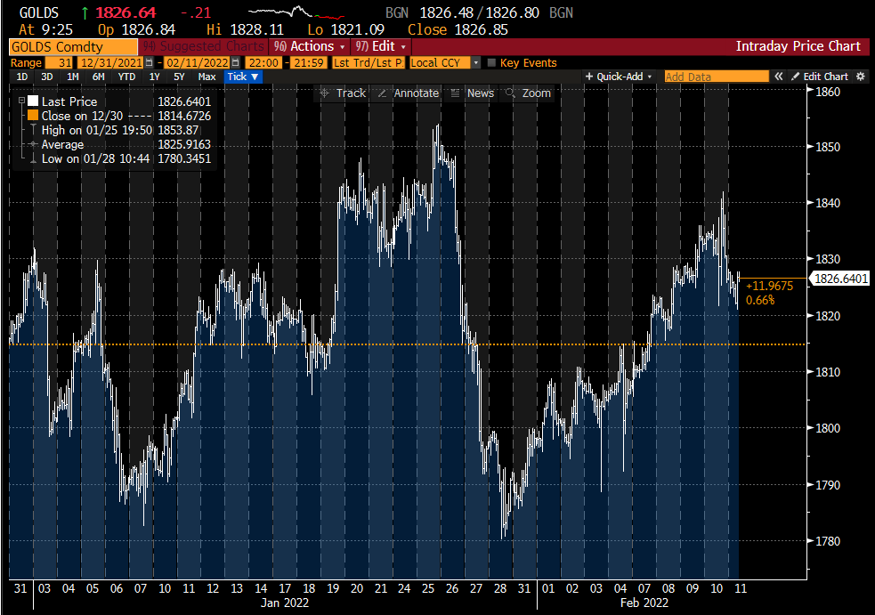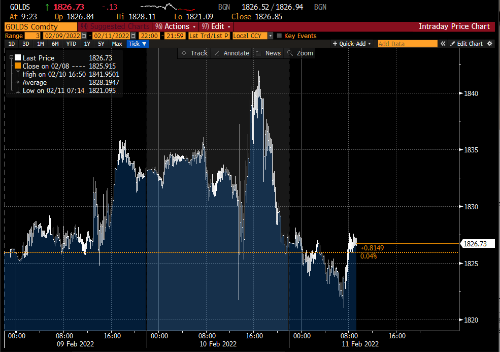 Spot #gold is trading around $1827/oz with a $0.30/oz bid-ask spread on Friday morning in London.