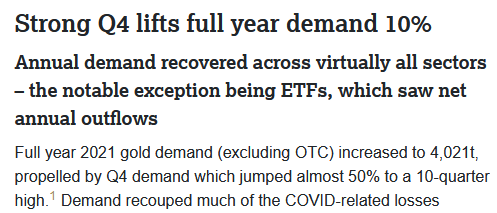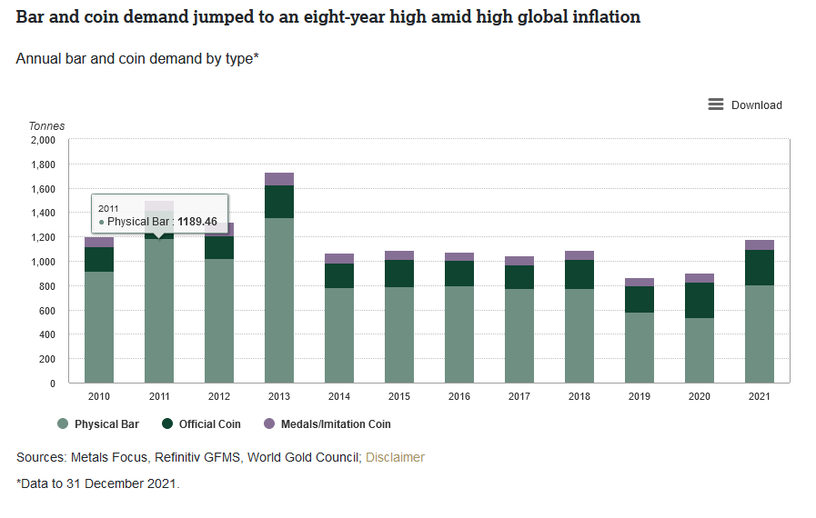 There's also another factor that doesn't get as much attention as it should - (small investment) Bar and Coin demand, which was again very strong in Q4-21 and for 2021 as a whole.