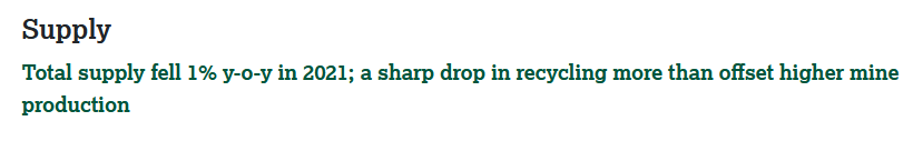 And finally #gold supply fell in 2021, with technical issues leading to Mine Production disappointment, especially in the second half of the year.