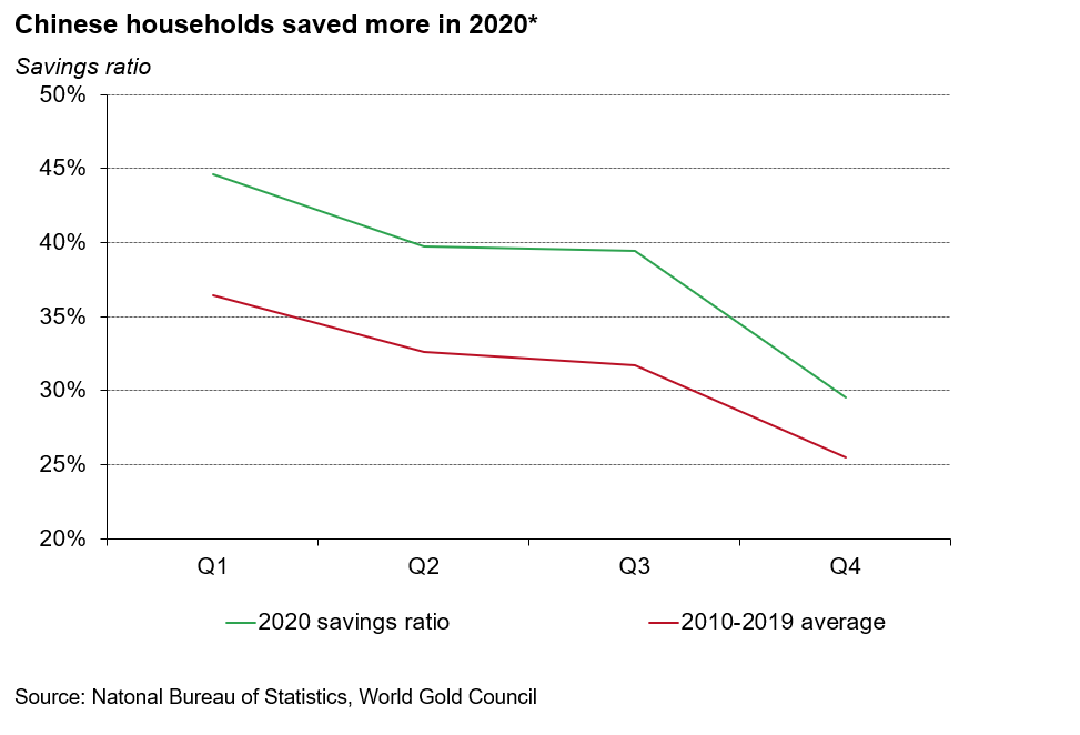 Gold’s ability to generate a long-term return, hedge against inflation and provide purchasing power protection could be attractive to savers. In the form of gold accumulation plans, ETFs, bars, coins or fine jewellery, gold is easily accessible for Chinese investors via both online and offline channels. And we believe gold’s role as an efficient means of saving could become more relevant to Chinese savers as: