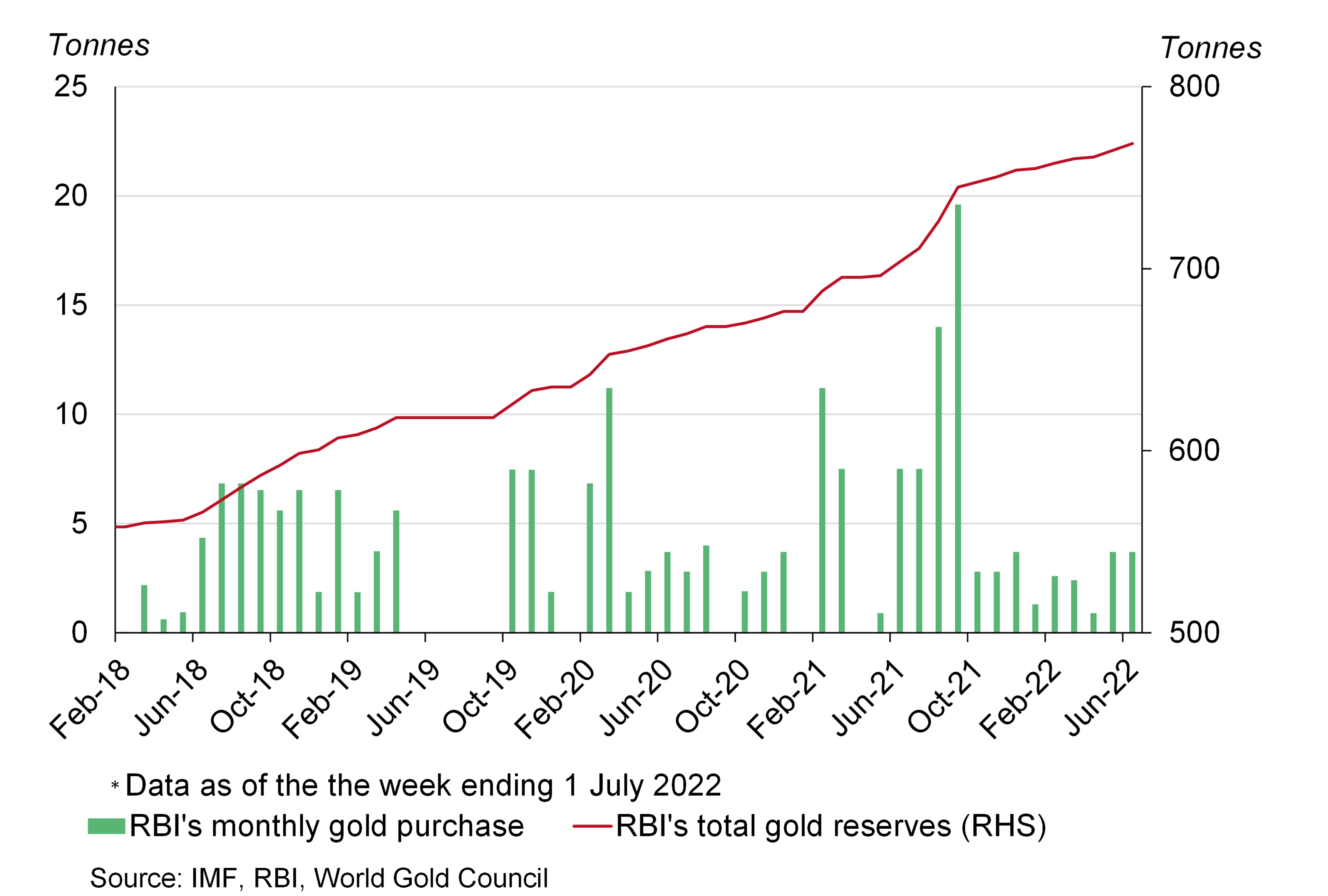 Chart 5: RBI added 3.7t to its gold reserves in June