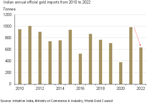Looking at 2022 overall, total official imports were 632t, 36% lower y-o-y (Chart 3), driven by: