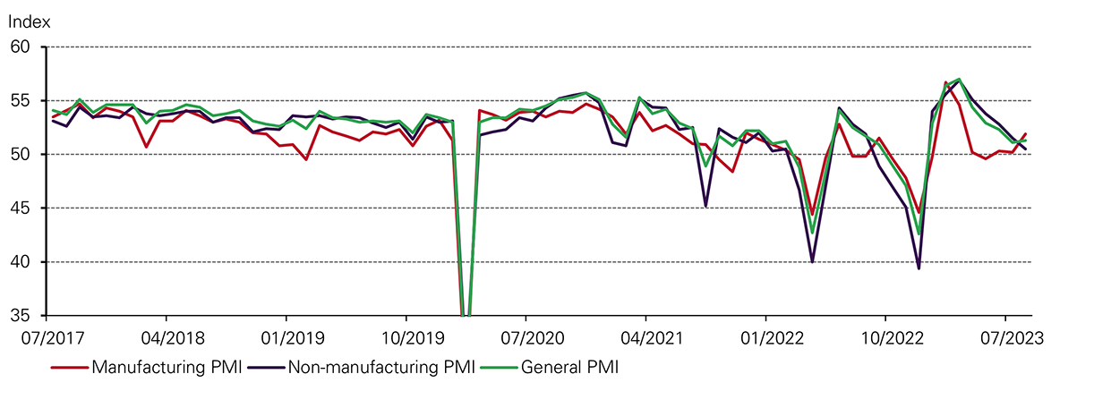 Chart 3: Manufacturing activities continued to rebound while other sectors stayed tepid