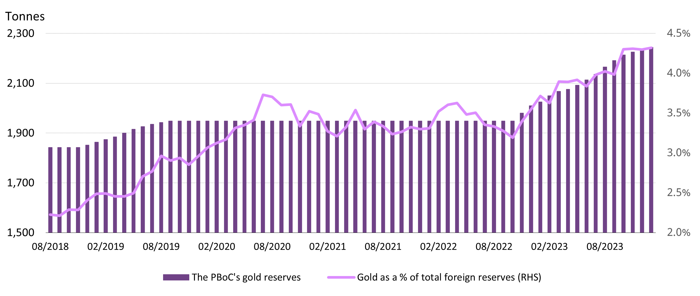 Chart 6: The PBoC’s gold purchasing streak extended to 15 months
