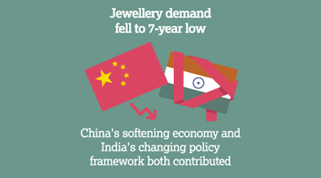 2016 saw a 7-year low for jewellery demand. Rising prices for much of the year, regulatory and fiscal hurdles in India and China’s softening economy were key reasons for weakness in the sector.