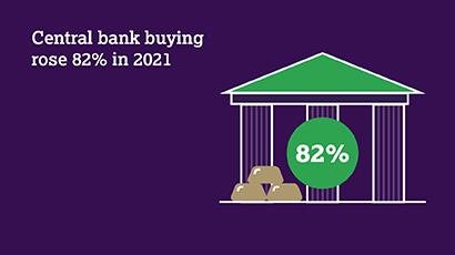 Central banks accumulated 463t of gold in 2021, 82% higher than the 2020 total and lifting global reserves to a near 30-year high. The pace of buying slowed in the second half, with a 22% y-o-y decline in Q4.