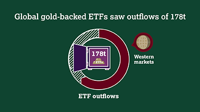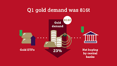 Growth in consumer demand was offset by strong outflows from gold-backed ETFs (gold ETFs), which lost 177.9 in Q1 as higher interest rates and a downward price trend weighed on investor sentiment.