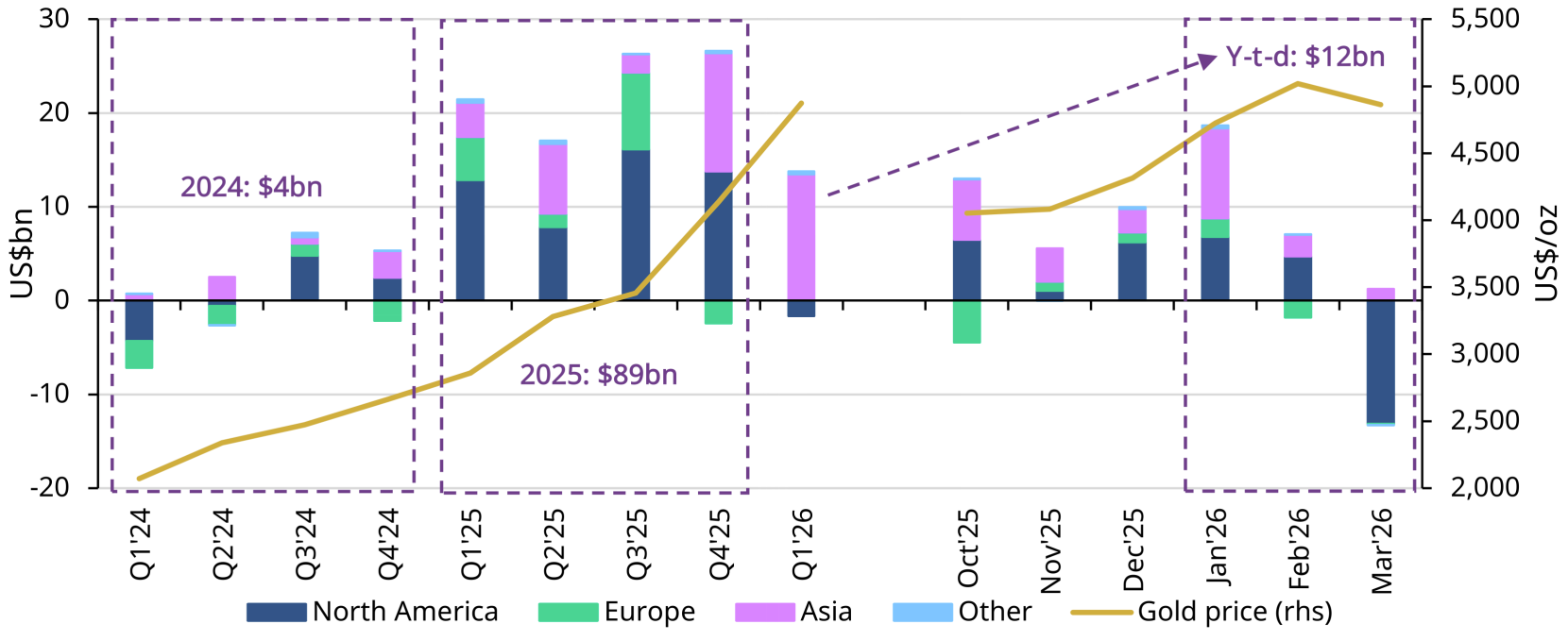 *Data as of 31 March 2026. Gold price based on the monthly average LBMA PM Gold Price USD.