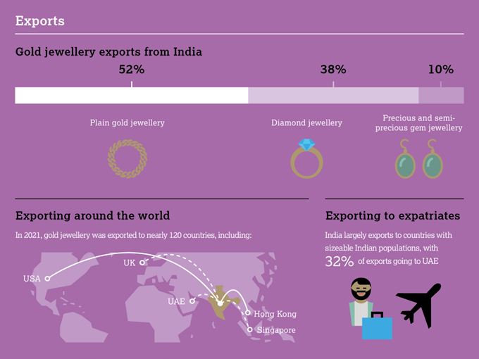 Chart 6: Plain gold jewellery exports accounted for 38% of gold jewellery exports from India in 2021